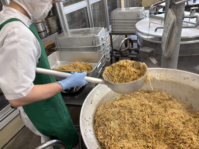 今日の給食に登場した「あまなつかん」は、和歌山県産のものです。甘酸っぱいのが特徴です。やきそばは、みんなが大好きなメニューです。