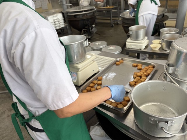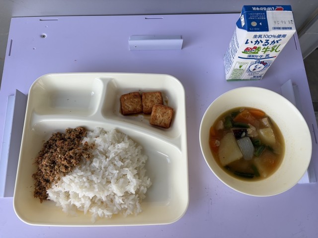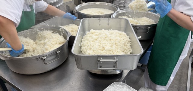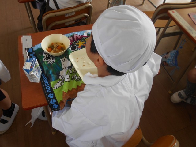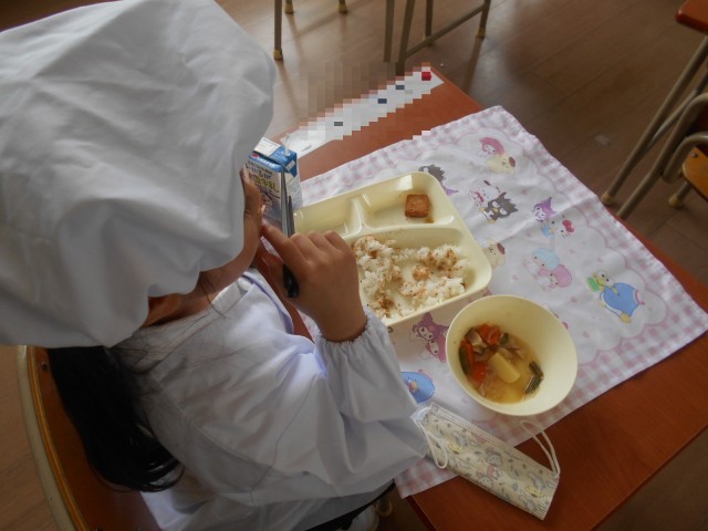 紅ざけそぼろはごはんにかけて、ふりかけのようにしていただきます。1年生もしっかりと食べてくれています。