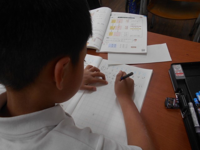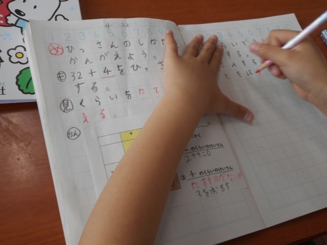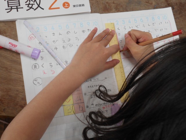 2桁たす1桁のひっ算の仕方を考えました。位をそろえて足すことや、足す数がないときはそのまま下ろすことなどを学習しました。