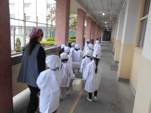 今日から1年生は自分たちだけで運搬しました。ゆっくり、気をつけながら運んでいました。配膳も自分たちでできました。頑張ったね!!