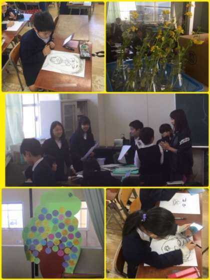 「校長先生、子どもたちがとても上手に似顔絵(自画像)を