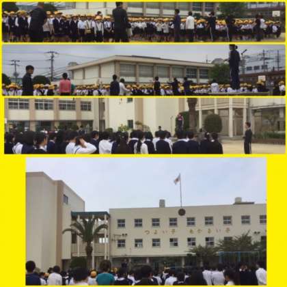 児童朝会を校庭でするか、講堂でするか、大阪市内でも学校によって違います。