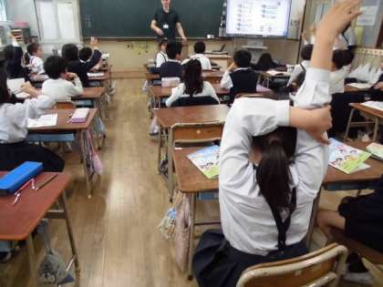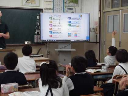 今日は、3年生がC-netの先生に来てもらって、外国語の学習をしました。