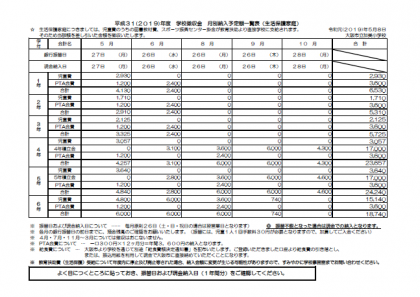 学校徴収金の口座振替のお知らせ(年間納入予定額)の掲載について