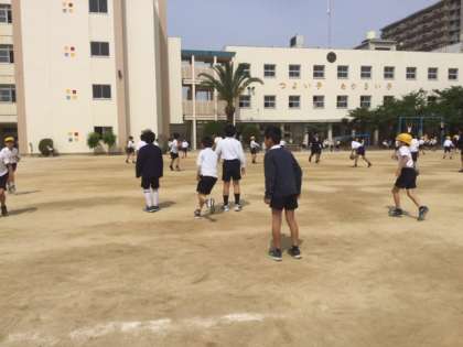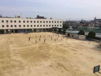 6年生の1クラスだけが、体育をしていると、随分広く見えます。