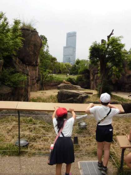 ハルカスと一緒にライオンが見えました。少し涼しかったので、シロクマも元気に活動していました。