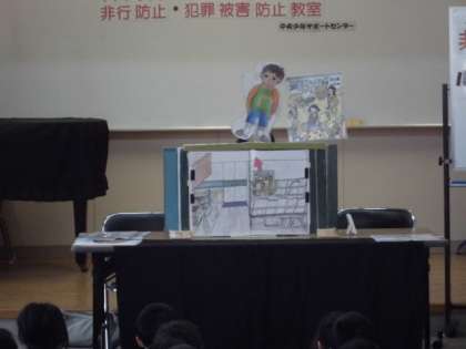 5年生は多目的室で、非行防止教室をしました。ペープサートを見せてもらいました。