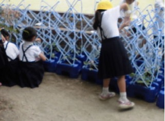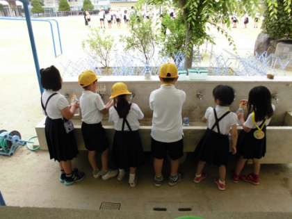毎日、暑いので、育てているアサガオもカラカラになっています。ペットボトルに水を汲んで、しっかり水やりをしています。