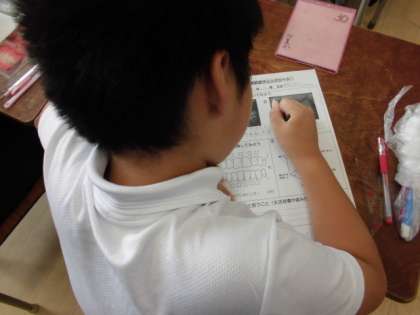 6年生は、歯科校医さんと歯科衛生士さんに来ていただいて、『葉と口の健康教室』をしました。「毎日、口の中のケアをすることが大切である」と、教えてもらいました。