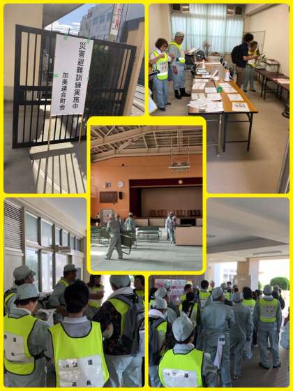 加美小学校の19町会の皆さんが総がかりで準備、参加して避難所開設訓練が実施されました。