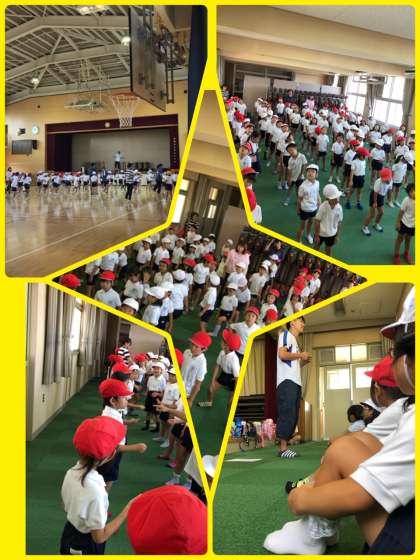 屋外での学習は避けて、多目的室と体育館で授業をしました。