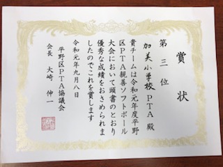 去る9月8日に開催された「令和元年度平野区PTA親善ソフトボール大会」で