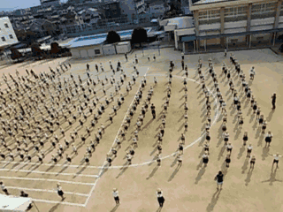 今日の児童集会では、ラジオ体操の練習をしました。運動会の体操の係の児童が前に出て、練習を行いました。