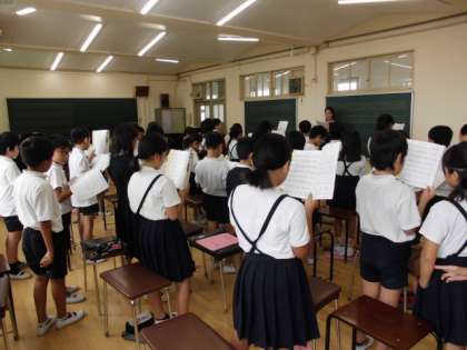 今日の音楽は、いつもの音楽の先生に加えて、校長先生もいっしょに学習をしました。