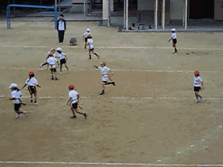 1年生は、体育の時間にしっぽ取りゲームをしました。