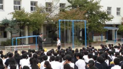 月曜日の児童朝会の様子です。校長先生から、児童が表彰されています。