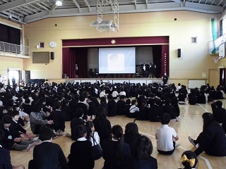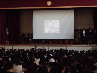 今日の児童集会は、集会委員会の児童によるクイズでした。スライドに表示されたキャラクターの一部を見て、そのキャラクターが何かを考えるクイズでした。