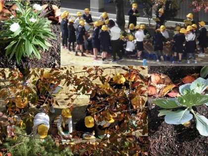 2年生は、生活科の学習で、花壇の「キャベツ」「なでしこ」の観察をしました。たんけんバックを持って、観察したことをメモしていました。