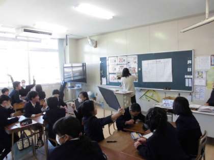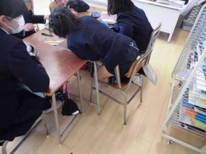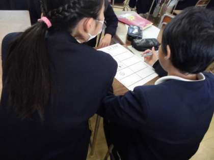 6年生の栄養指導の様子です。グループ対抗でクイズ形式で学習をしています。