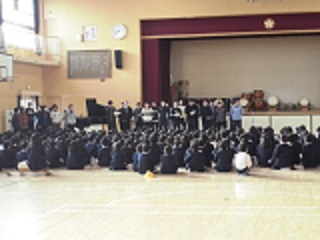 今日の児童朝会でも校歌を歌いました。1番を先生方が歌った後、引き続いて児童といっしょに歌いました。