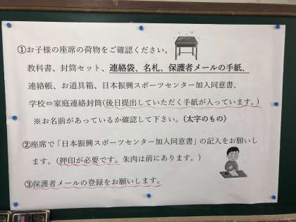 「就学通知書」「家庭調査書」「保健調査票」をご提出いただきます。大変重要な書類ですので、必ずご持参ください。