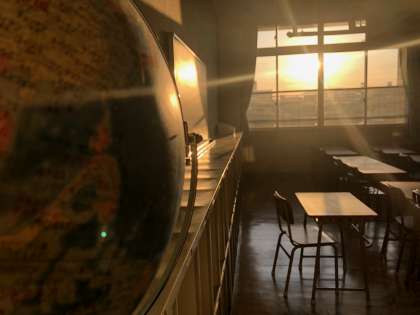 今日の一言 4月14日 地球儀と夕日