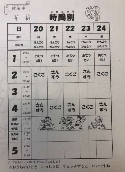 きょうは おやすみのあいだ おべんきょうが できるように じかんわり を つくってみたので みてください