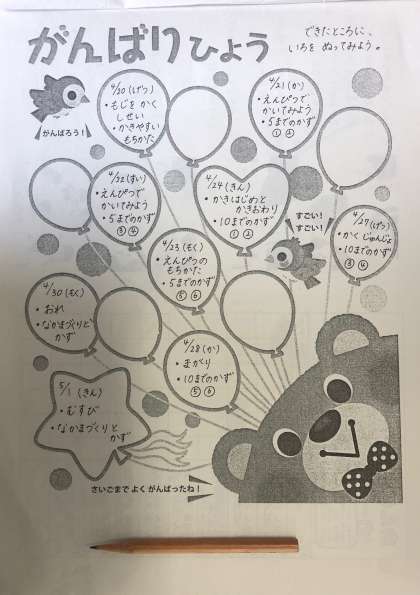 『おやすみちゅうの 1ねんせいの かだい』3ページの<おんどくの やりかた>を参考にして、お取組みください。