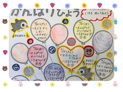 「がんばりひょう」に せんせいも いろを ぬってみました。