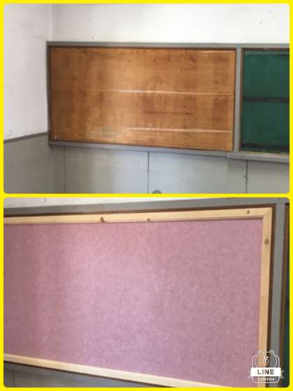 写真下:特別支援教室の掲示板をきれいにしました。上が改修前、下が改修後です。