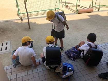 お兄ちゃんとお迎えを待っている2年生の男の子