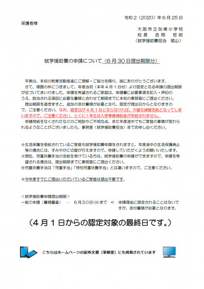 まもなく就学援助申請の締切です。まだの方はお早めに