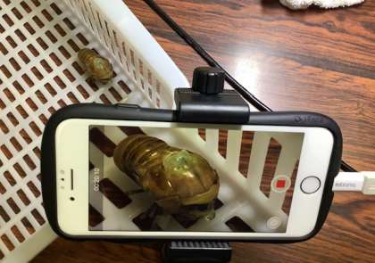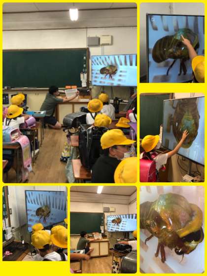 一生懸命に羽化しようとしているセミの幼虫に声援がとびました。