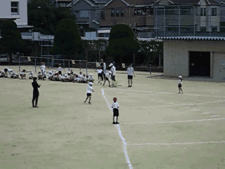 1年生の体育の様子です。ソフトボール投げにチャレンジしています。