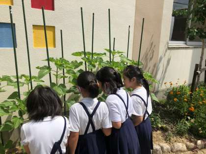 写真:ヒマワリを見に来た3年生の子どもたち!!