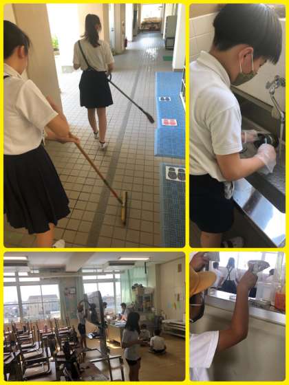 5時間目、自分たちの教室だけではなくて、玄関や保健室前の廊下を丁寧に掃除していました。
