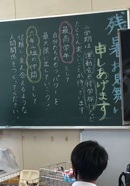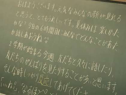 黒板には、毎日、先生から子どもたちへのメッセージが書いてあります。