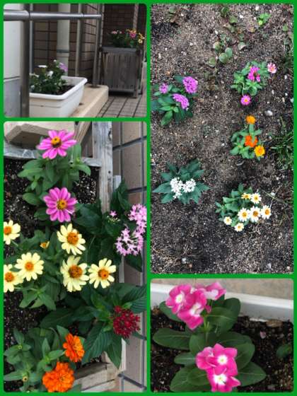 校門ロビーの花を植え替えました。