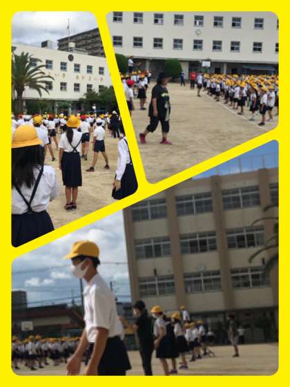 9月27日の運動会に向けて、今日はじめて全校の子どもたちがいっしょに「ラジオ体操」をしました。