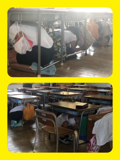 これを合図に子どもたちは、先生の指示に従い机の下にかくれました。