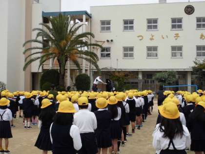 今日の児童朝会では、夏休みの作品の表彰もありました。受賞した児童が、朝会台で校長先生から、表彰状をもらっていました。