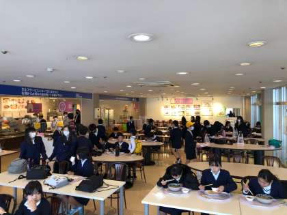 1330にエントランスホールに集合するまで自由時間です。空いてる時間帯にご飯食べていいよと言ったので子どもたちが食堂に押しかけました。