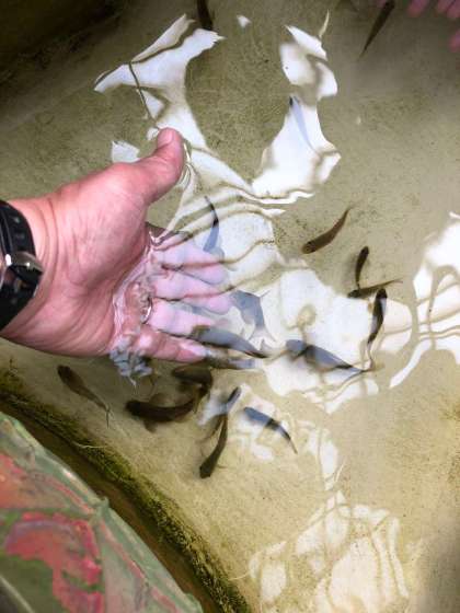 人の角質を食べる!昨日のセミナーで習いました。子どもたち、一度水の中に手を入れると手をついばんでくるような感覚が面白くて離れることができません。