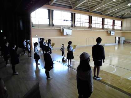 今日も、休み時間に体育館に集まって、「国際クラブ発表会」の練習をしました。少しずつ上手になっています。
