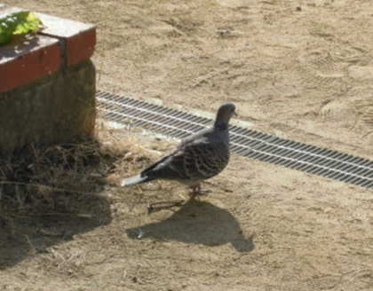 今日の1時間目は、どの学年も運動場を使っていません。代わりに、鳩が運動場を使って散歩をしていました。