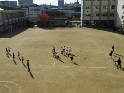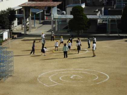 今日のたんぽぽ学級「みんなの時間」は、運動場で活動しました。低学年と高学年に分かれて、ボールを使ったゲームをしました。
