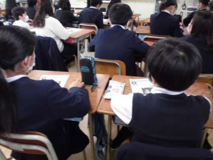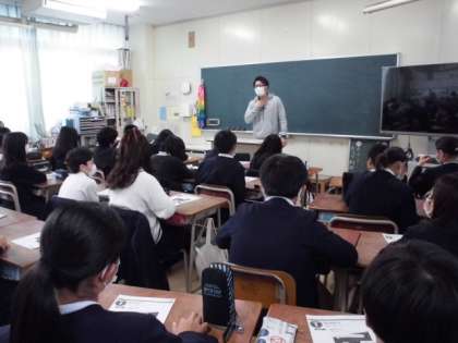 5時間目に加美中学校の先生が出前授業に来てくださいました。クラスごとに理科と英語の学習をしました。