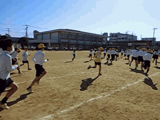 今日も、かけ足週間がありました。運動場で低・中・高学年に分かれて、走っています。