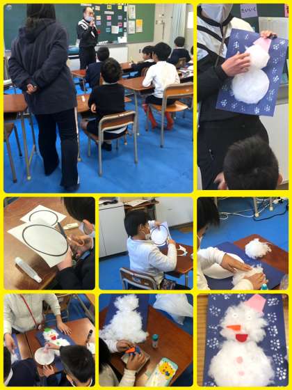 みんなが混乱しないような材料の配布の仕方を工夫します。作業手順も混乱しないように理解できるように説明します。子どもたちが作業に集中し、「雪だるま」の作成を楽しめるかどうかは、適切なしっかりした準備、児童に応じた声のかけ方で決まってきます。