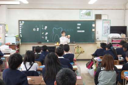2/18(水)、歯科衛生士よりフッ化物塗布の前に、歯みがき指導を受けました。